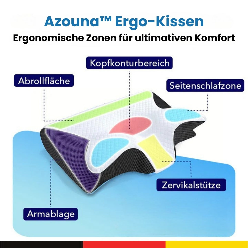 Das Azouna™ Ergo-Kissen wurde in enger Zusammenarbeit mit Orthopädie-Experten mit einem ergonomischen Design entwickelt, das Kopf, Nacken, Schultern und Arme optimal unterstützt: