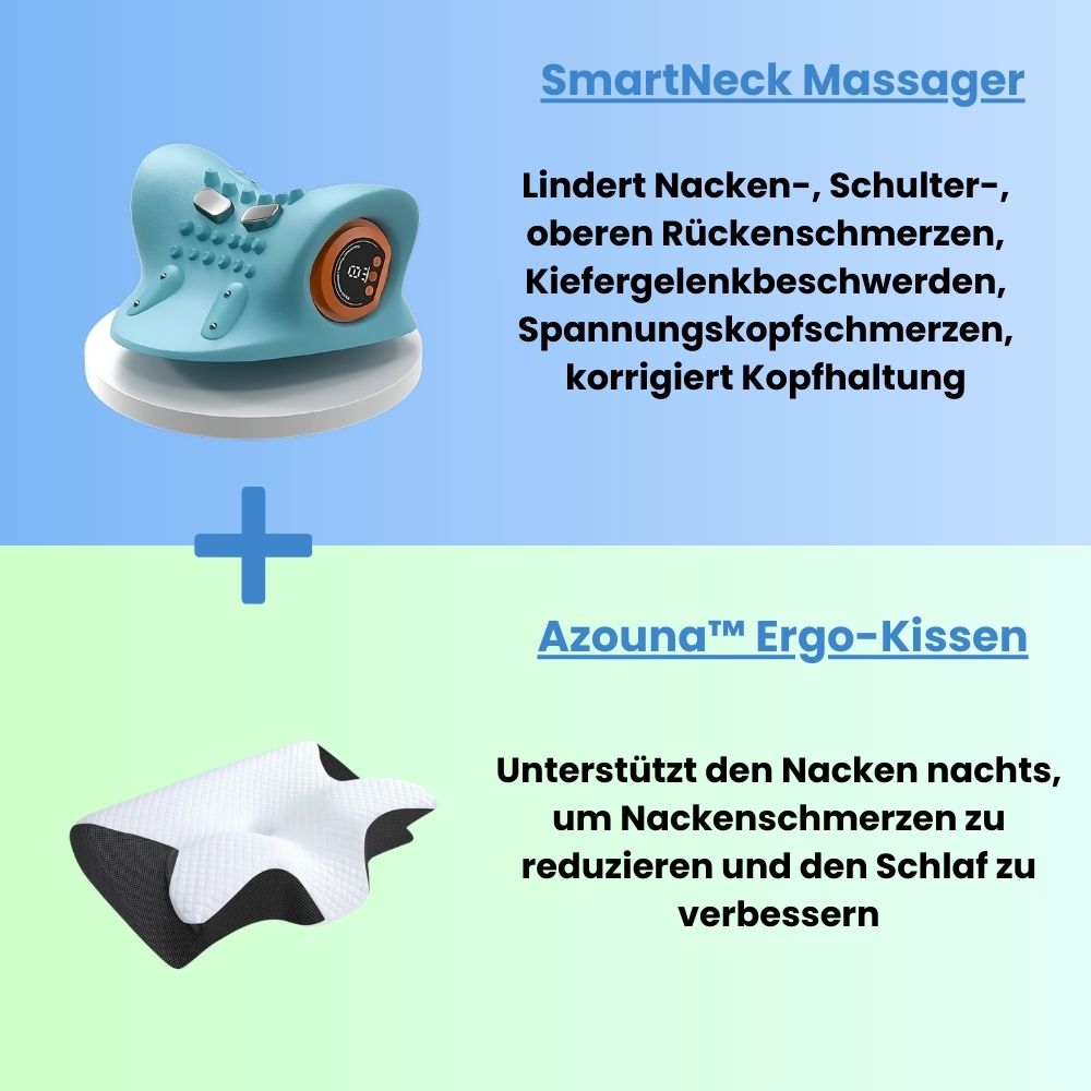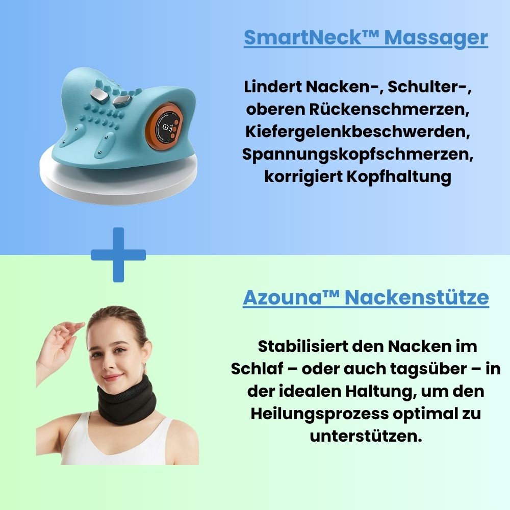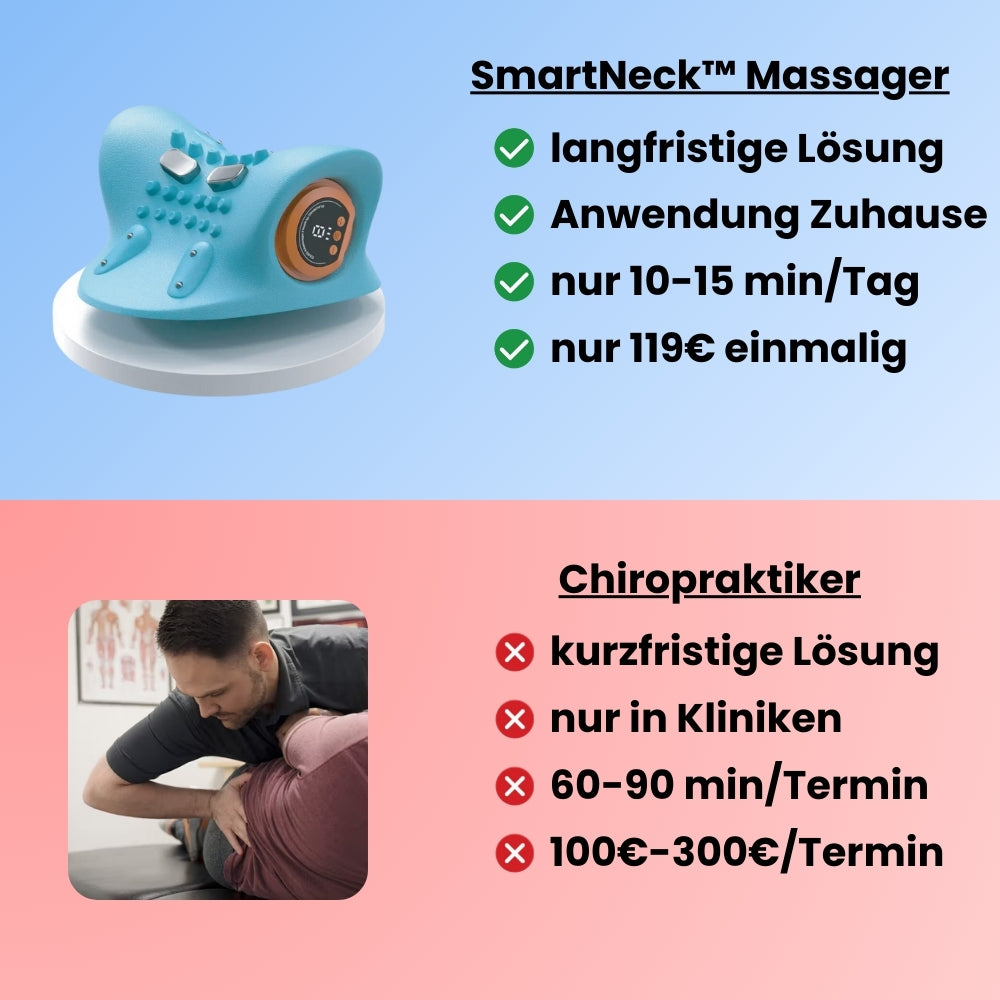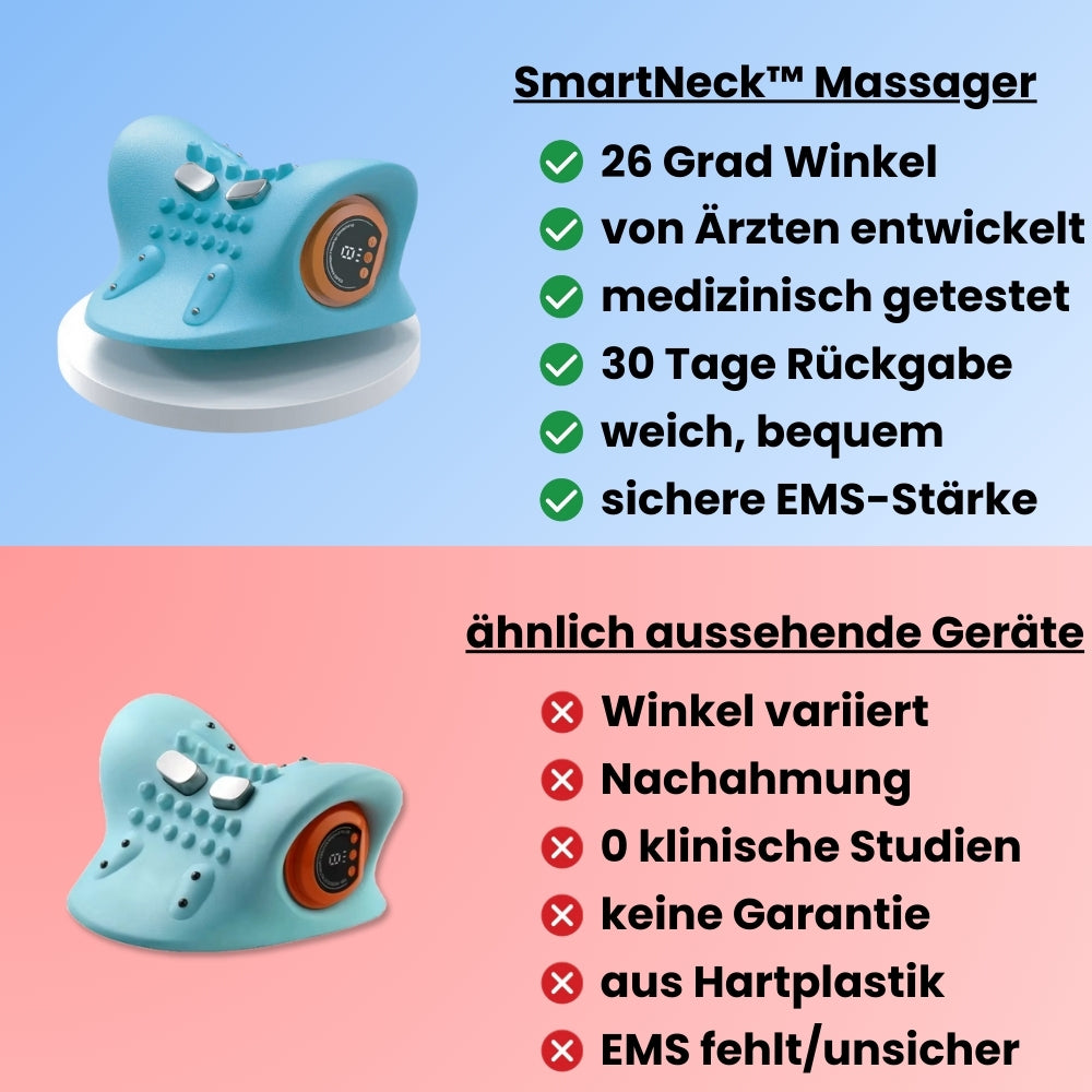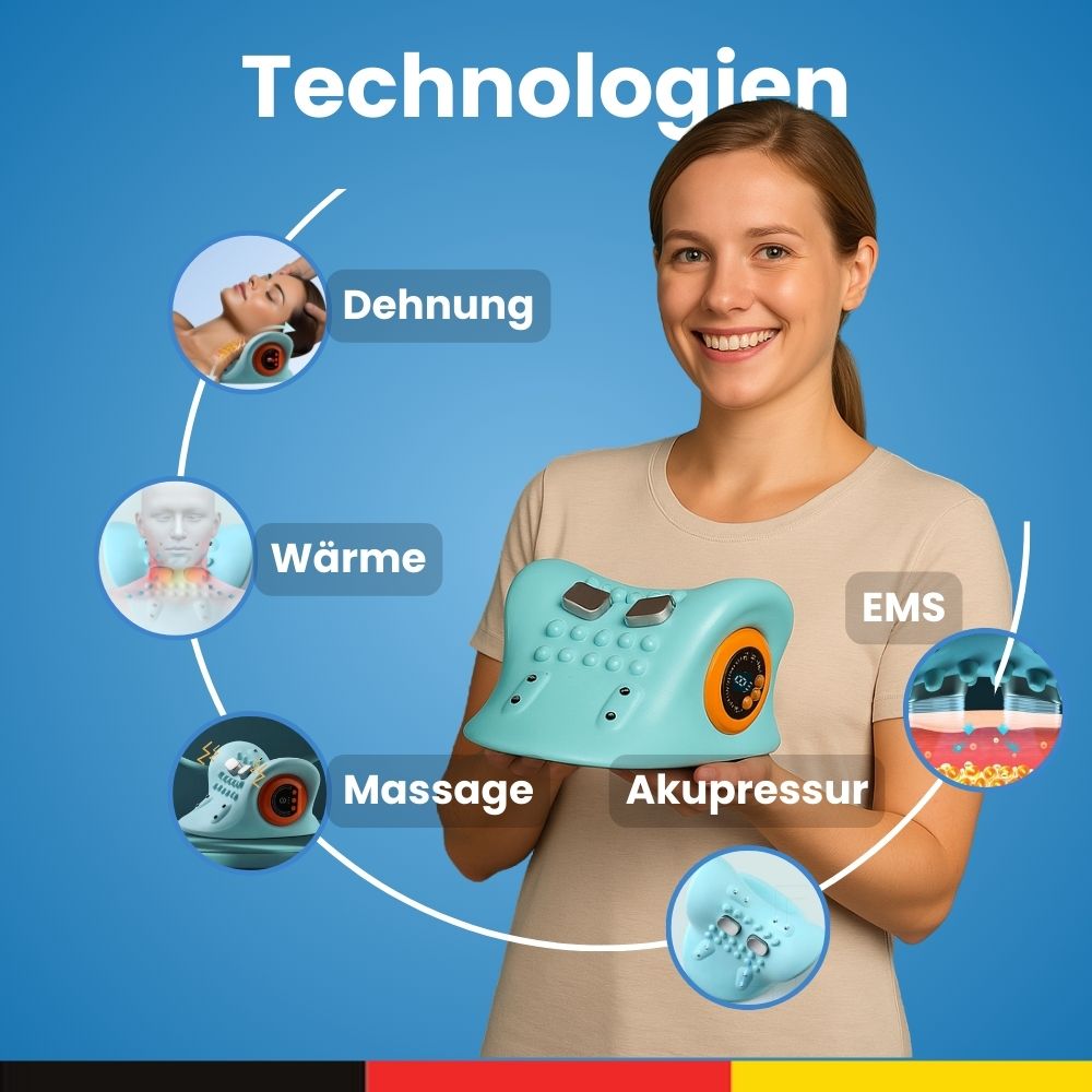 Der SmartNeck nutzt eine einzigartige Kombination von Technologien, um die Halswirbelsäule sanft zu dehnen und zu dekomprimieren, wodurch schmerzhafte, eingeklemmte Nerven freigesetzt werden und die Schmerzen fast augenblicklich gelindert werden.